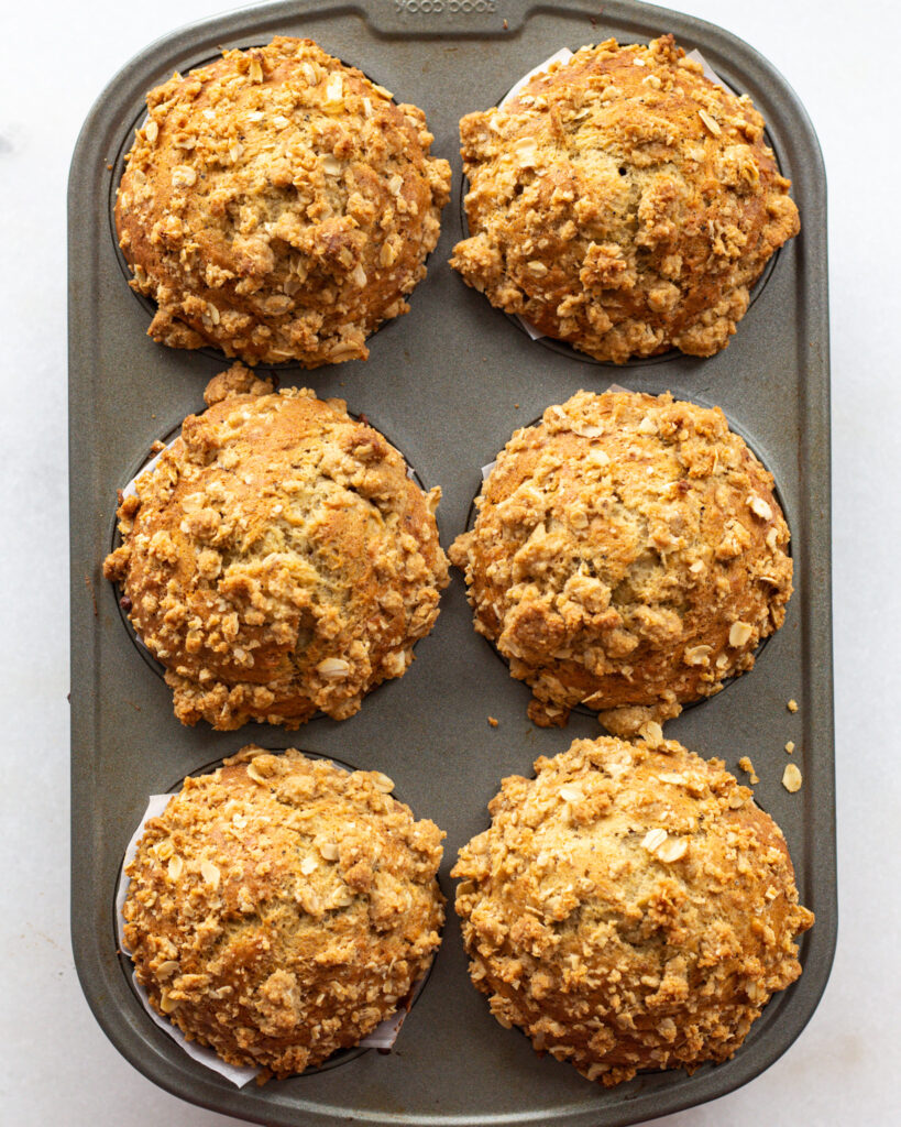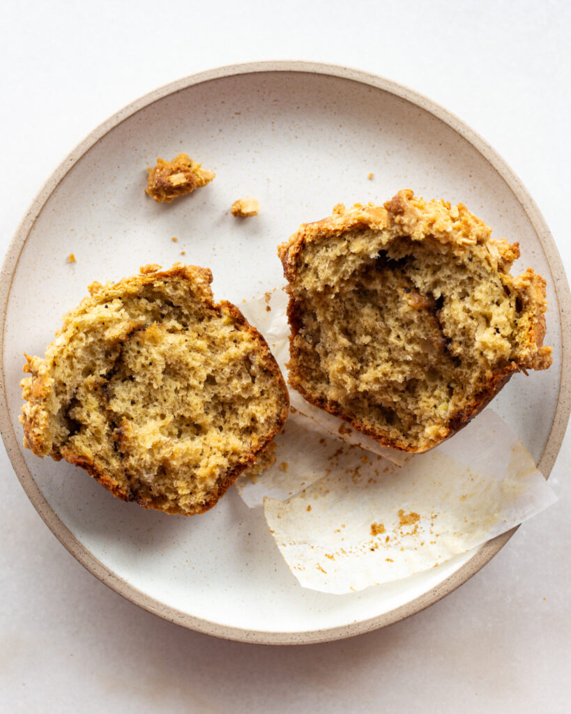 Coffee cake is such a funny and interesting title to me – because almost no coffee cakes have coffee in them. They are just designed to be eaten with coffee. So being the ever-contrarian rule-breaker that I am, I was like “no…now is the time for coffee in my coffee cake.” And that’s how these coffee cake muffins were born. Good thing bananas and coffee pair fabulously together. Which means this muffin pairs even better with your morning coffee. It’s a win-win-win all around.