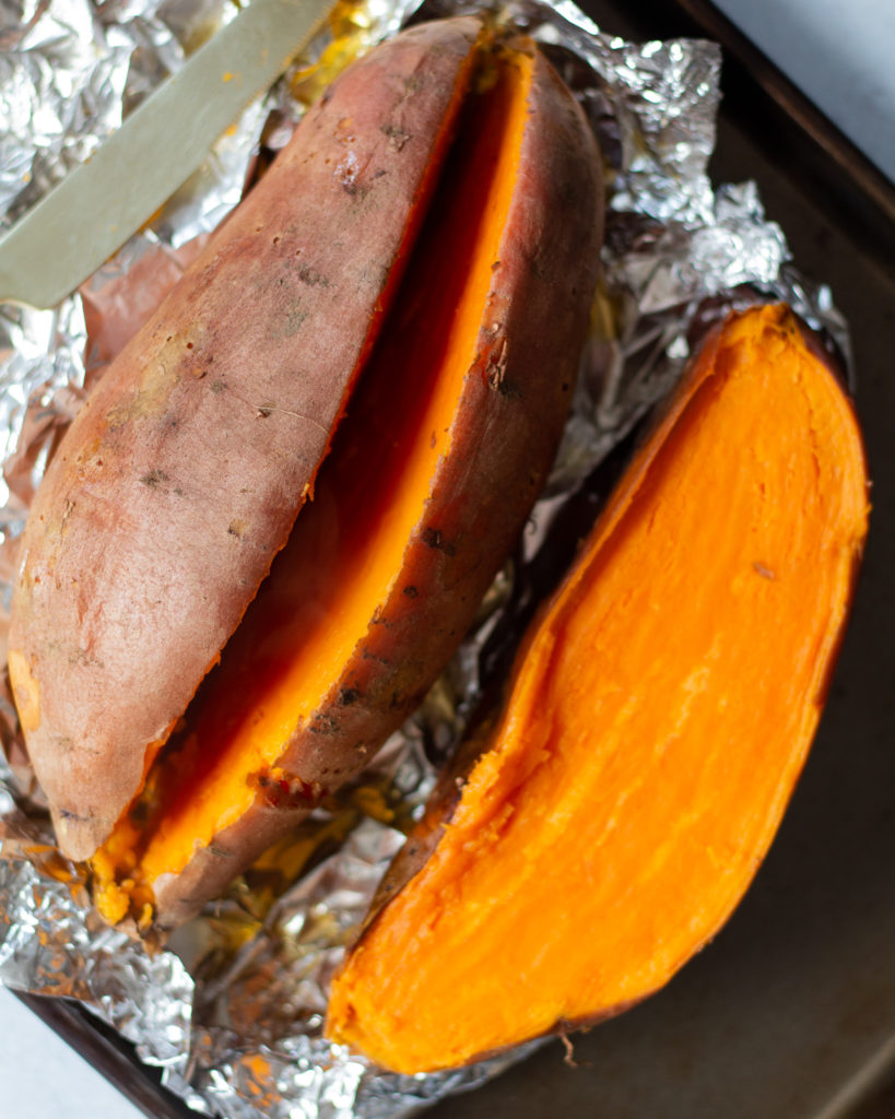You can either make your sweet potato in the oven or in the microwave. Here are my tips on how to do either: