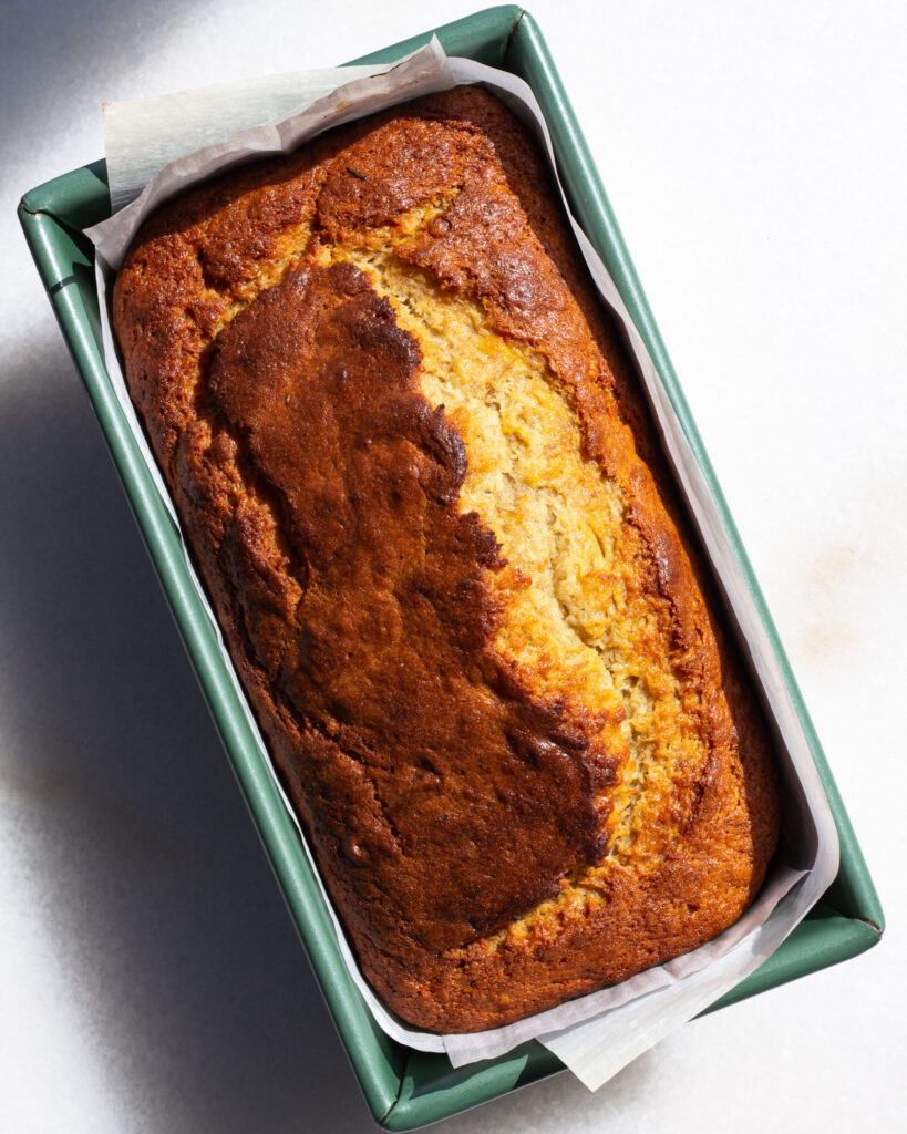 My favorite banana bread to make! The brown butter and the big chunks of banana are the best.