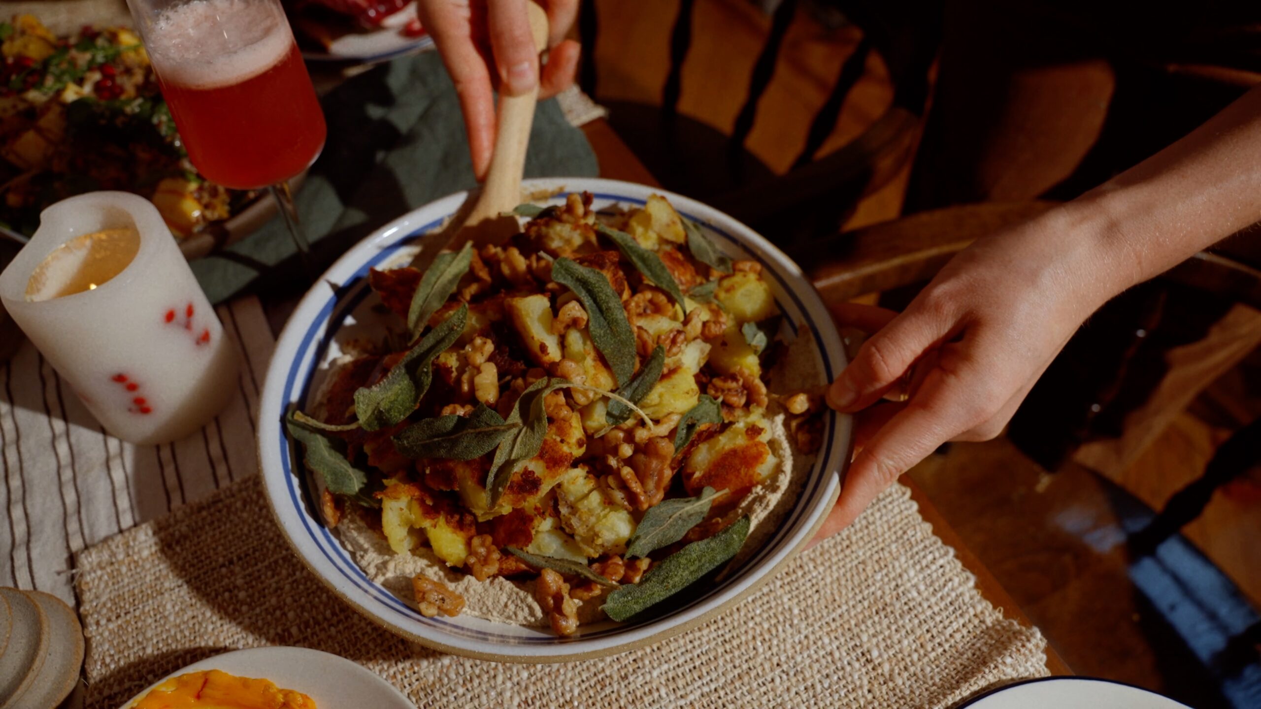 - The walnut spread is the creamy, dreamy counterpart to the crispy potatoes. No matter what, a crispy potato needs a counterpart so that it doesn’t read as dry (this is why fries + ketchup = a classic), here that counterpart is a fried sage and walnut spread that is something I could eat with a spoon (and often do). Don’t sleep on it, it is phenomenal.
