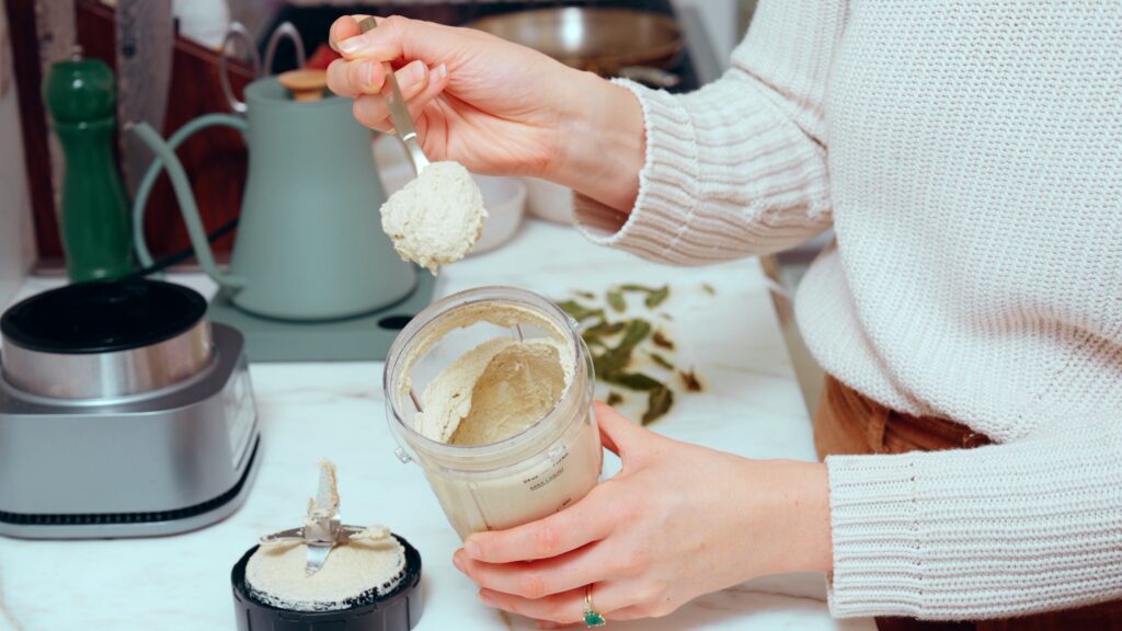 - Blend the walnuts until you have a thick and creamy spread, this may take a few minutes. Set aside. This will also keep in the fridge for a few days.