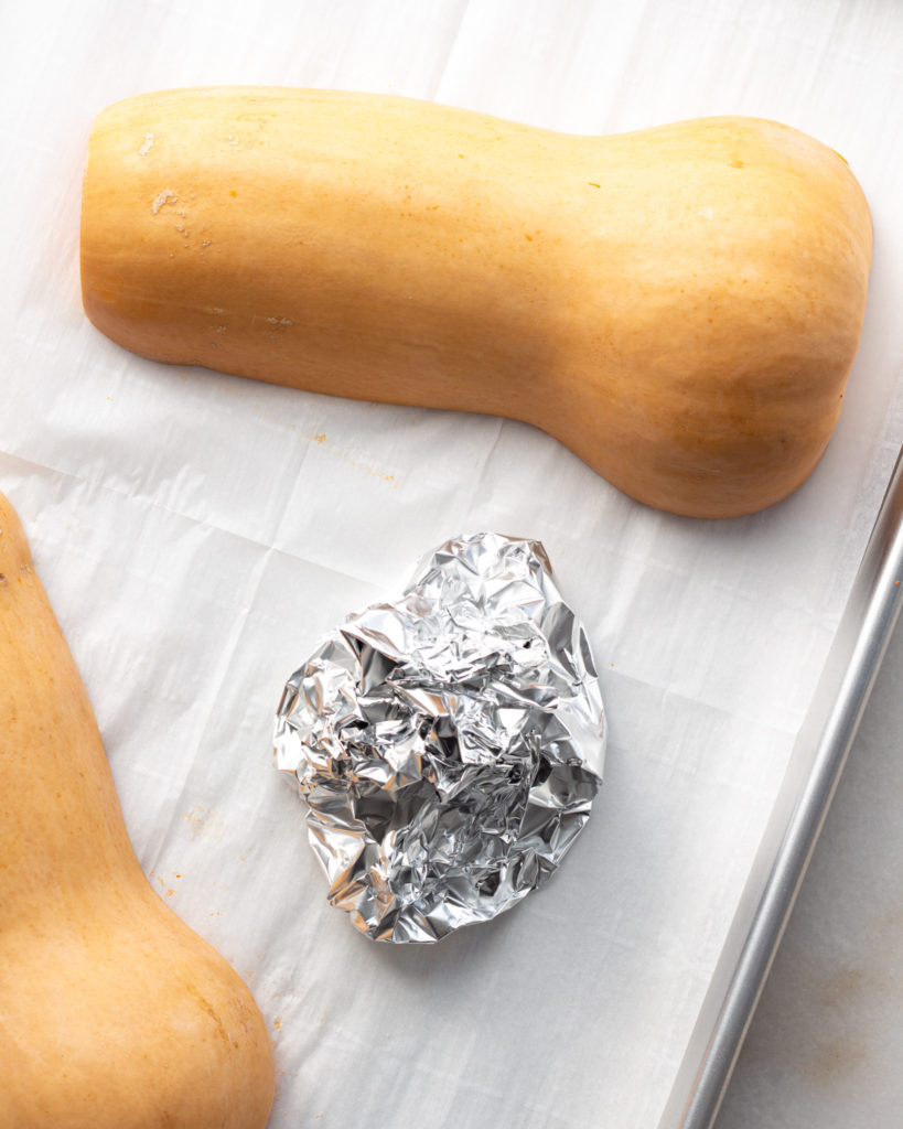 - Preheat the oven to 425°F. Cut the squash in half and set one half aside for another use.