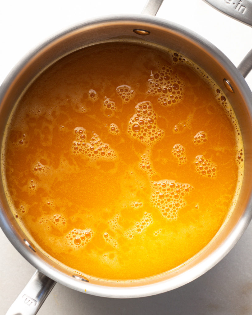 - Add the butternut broth to a pot and put it on medium heat. Let it come to a simmer and then lower the heat so that it is kept warm but not boiling.
