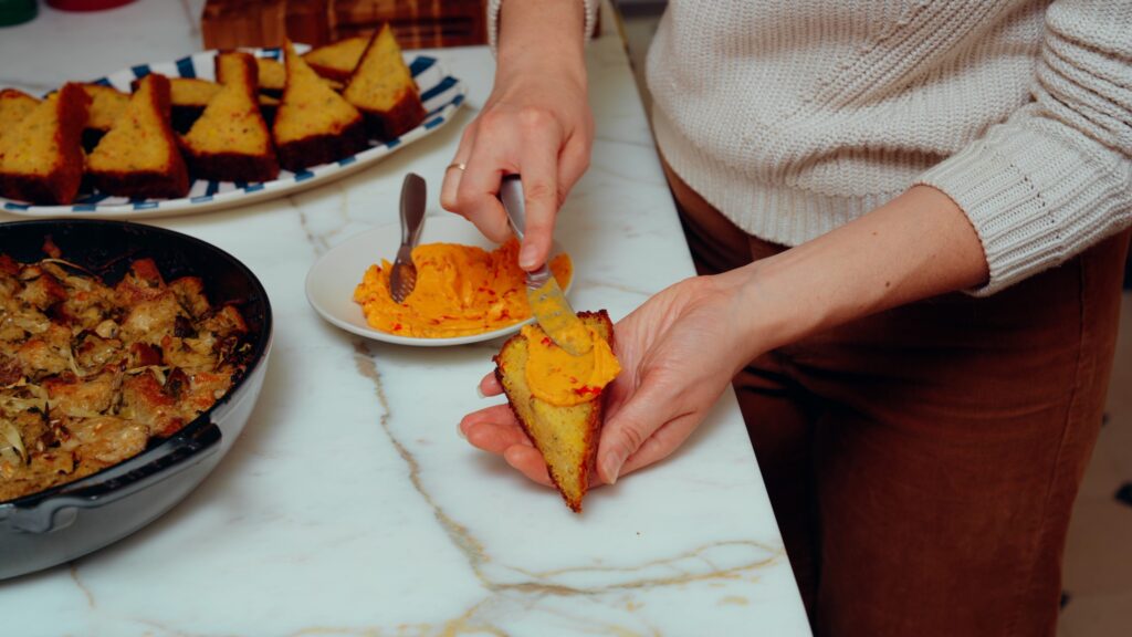 Double the chili – triple the fun, is what I always say. But do not worry! This Calabrian Chili Cornbread is not too spicy. In fact, it’s so rich, dense and buttery that I dare to say we need the chili to balance it out. If you want a fun twist on a holiday bread, this Calabrian Chili Cornbread with Whipped Honey Butter is just waiting for you to discover her.