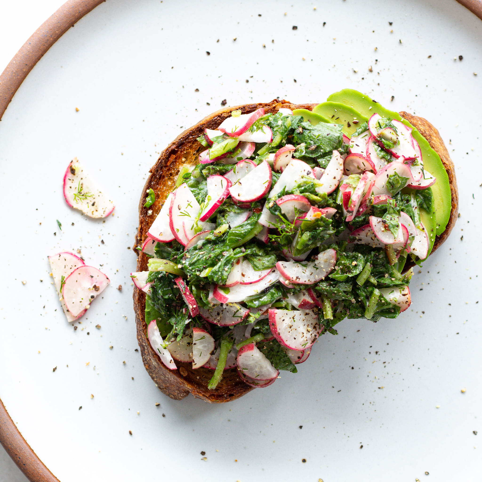 Radish Greens Salad on Avocado Toast