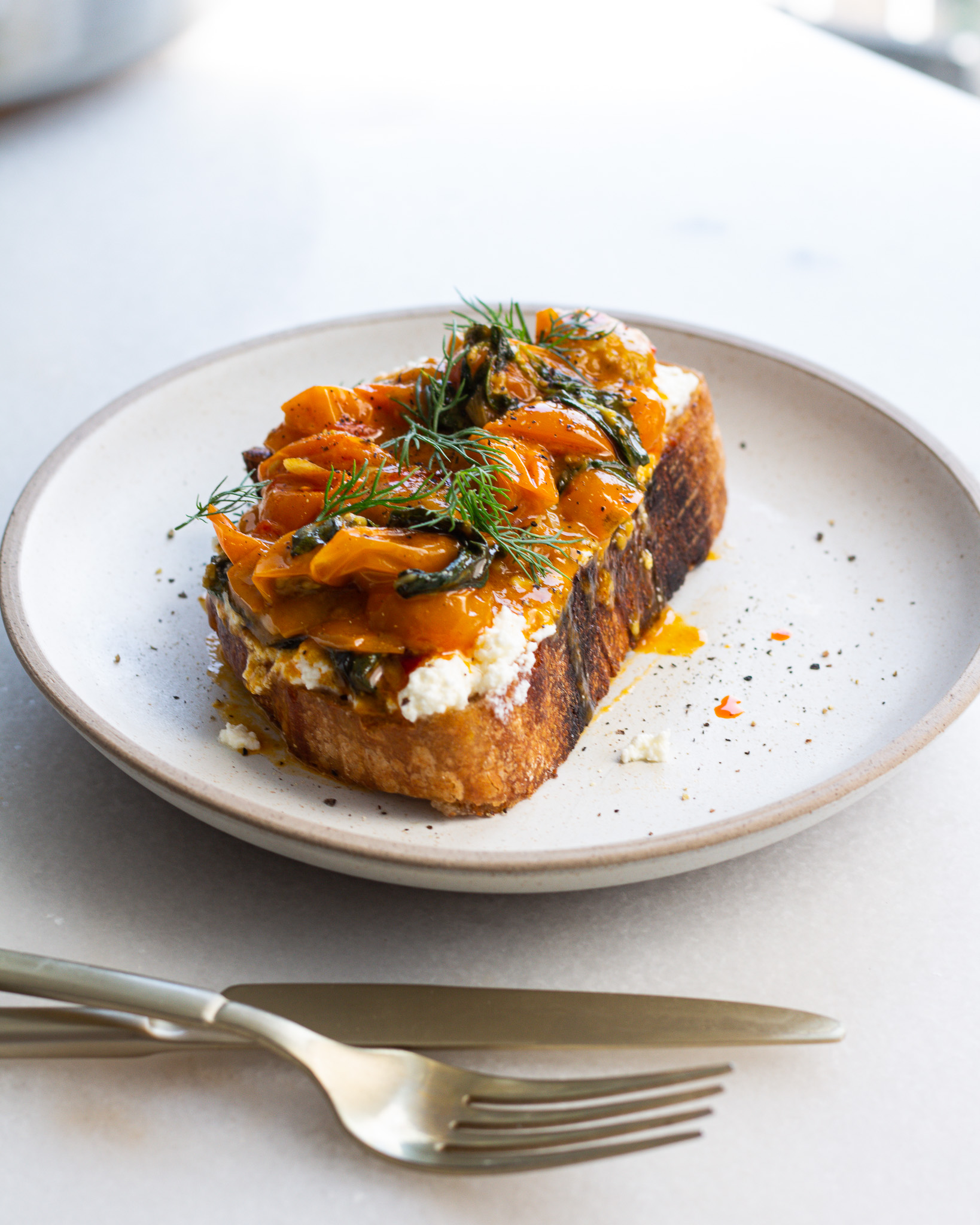Chili Sungold Tomato Toast with Dill