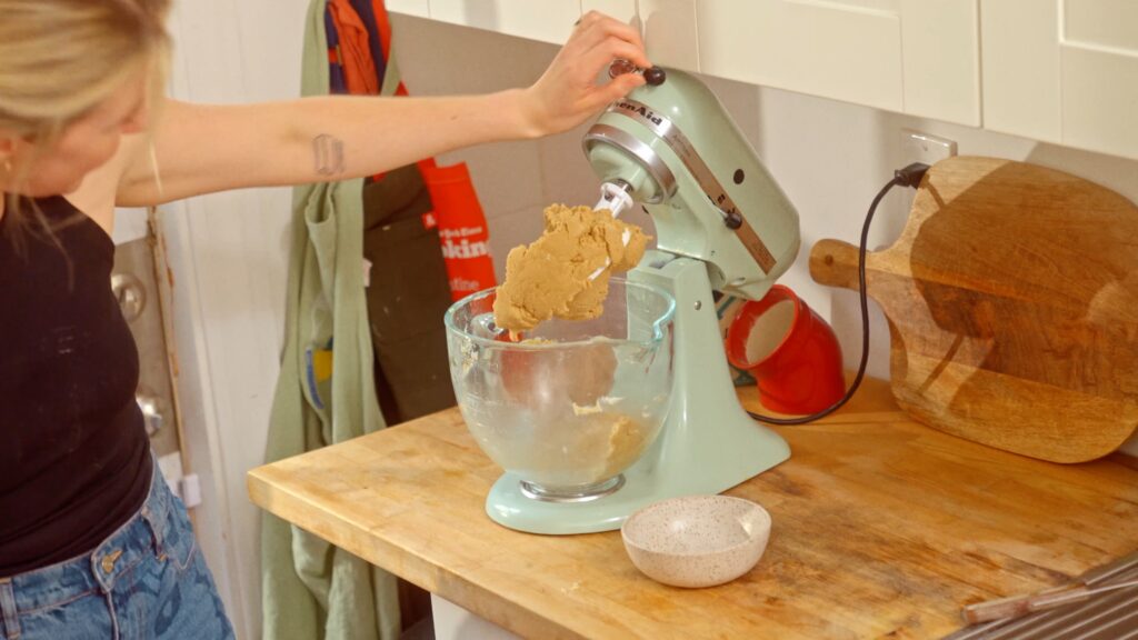 - Add softened butter directly to the dry mix until you get a dense cookie dough-like texture. See the image above.