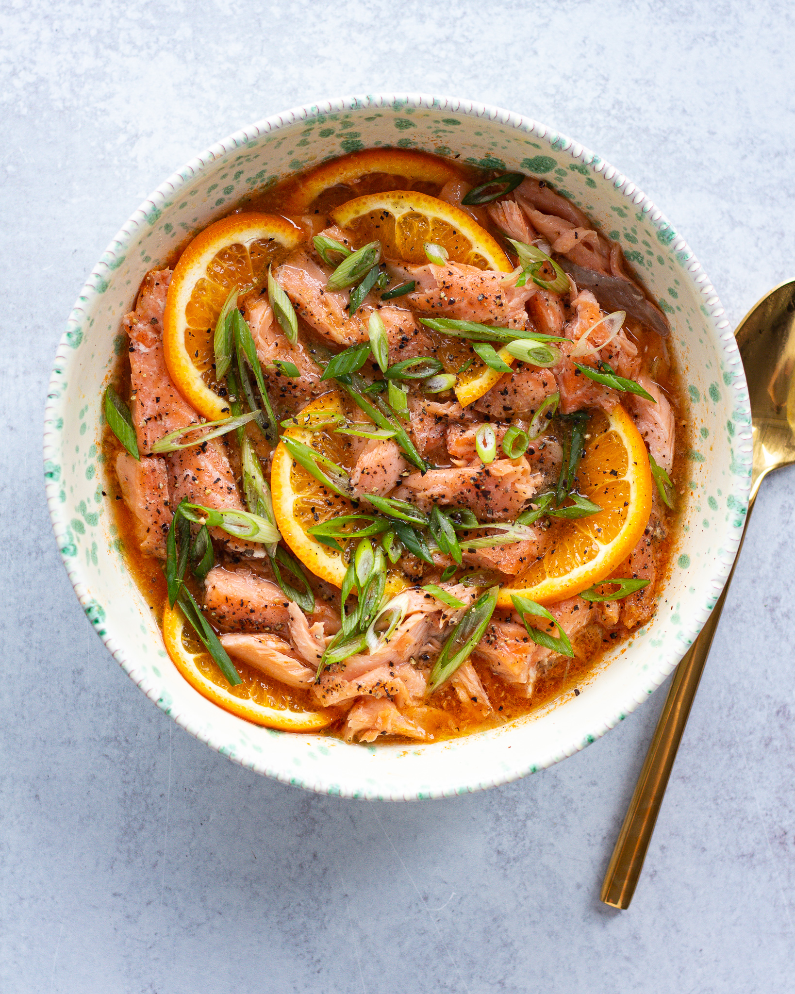 What I love about this citrus salmon is its versatility. You can do this with fresh salmon, or you can add salmon leftovers you already have right into the broth – and then boom, old salmon turns into an all new dinner. Because I’m all about repurposing here 😉