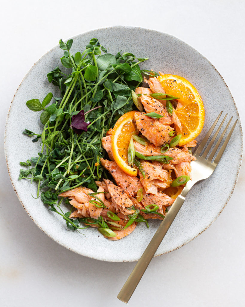 If your salmon is pre-cooked, great! Then you can just skip to the citrus reverse-marinade and get ready to serve.