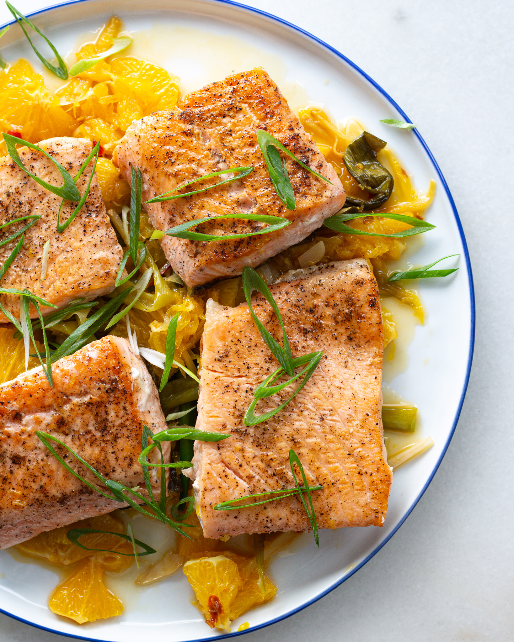 This makes for the best salmon soup dish I’ve personally ever had! I swapped serrano for plump bell pepper (family can’t handle spice whatsoever), but I added chili crisp in my bowl to make up for it. I feel like this dish could be easily modified to anyone’s liking or cuisine by swapping different starter aromatics (e.g. fennel, scallion, celery, radish, etc), different fish, or different finishing aromatics (e.g. lemongrass, thai basil, nutmeg). Love it Justine!
