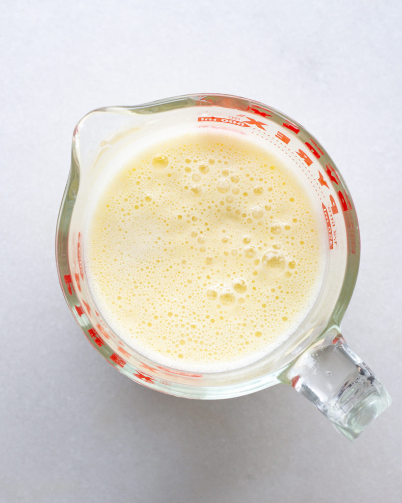 The dough starts with the yeast mixture, so prep that first.