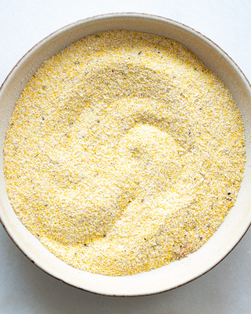 This batter is simple enough, but gives you a really homey, rich, cornmeal flavor. Here is how I suggest prepping the batter: