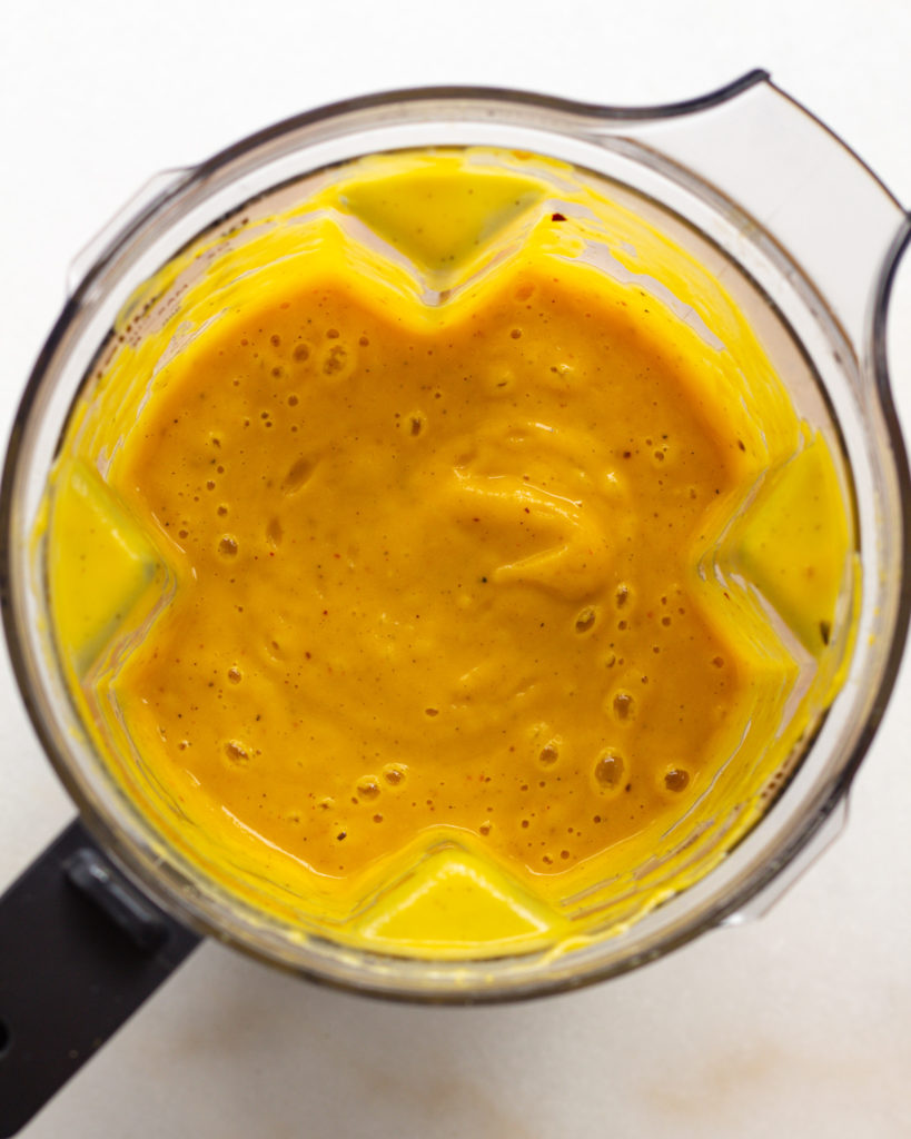 - Add the red pepper flakes and cup of water and blend until a smooth purée forms. Feel free to add more water as needed.