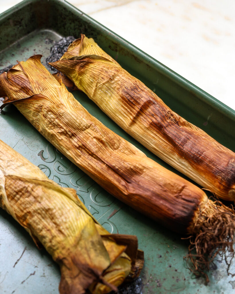 You’ll need to do this at a high temperature (think 425°F), for about 45-50 minutes. When they start looking darkened and are soft to the touch, then they are ready!
