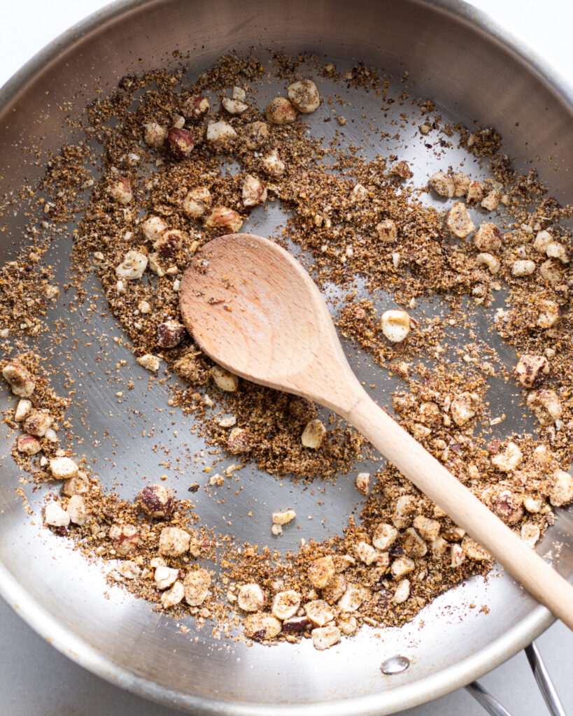 Don’t skimp the salt in this portion of the recipe! It needs it. Add the salt and then toast over medium heat until everything is nutty and delicious, about 4-5 minutes.