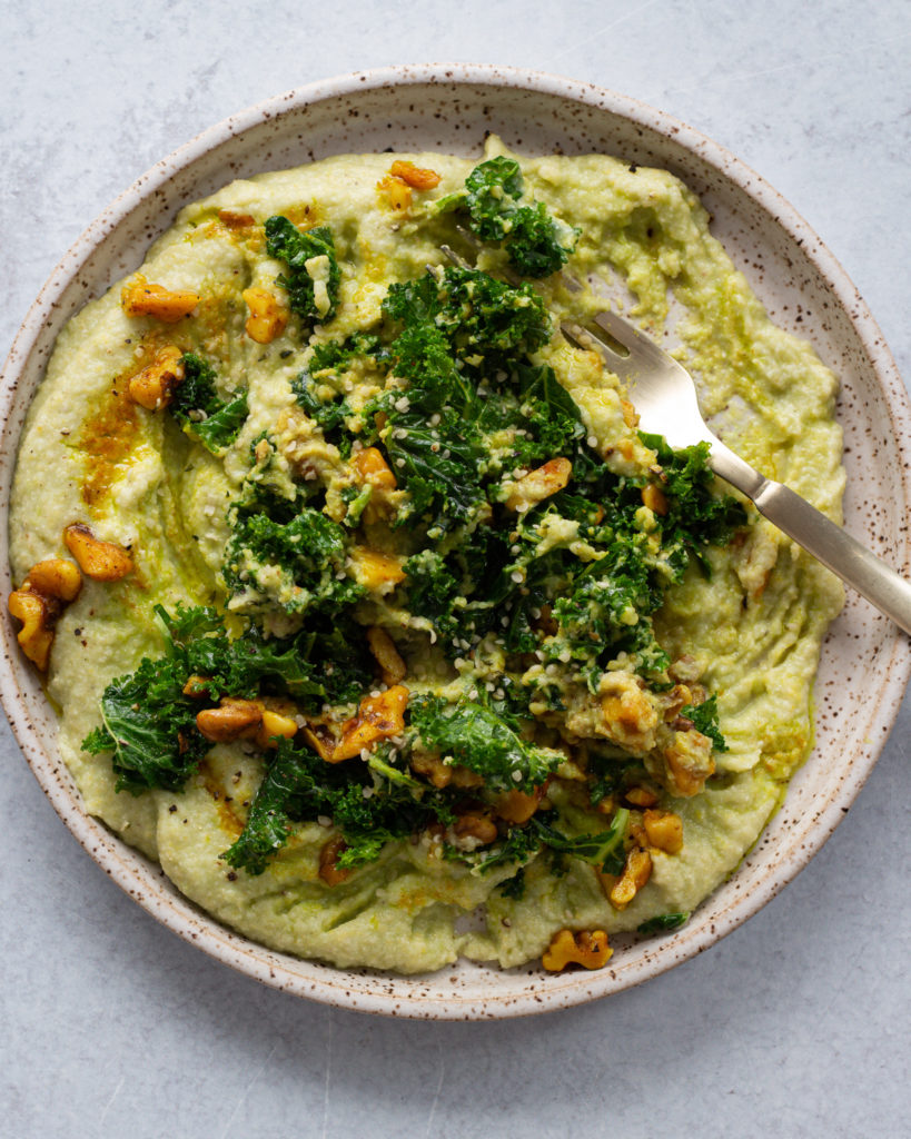 - Top with the kale and turmeric lime walnuts. Add black pepper as desired.