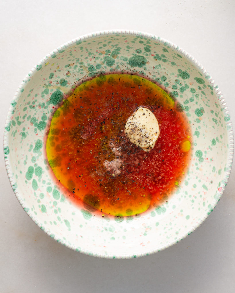 Next up is this blood orange vinaigrette. You can make it with normal oranges, grapefruits, or even lemon, but the blood orange gives it a color and sweetness that I love, especially in the height of orange season. It’s just such a refreshing note that I can’t get enough of.