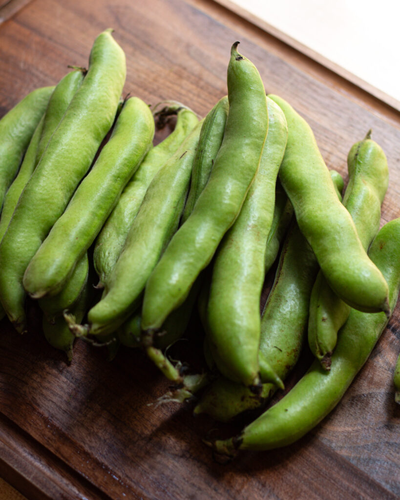 - 20 fava bean pods, about 1 cup of shelled fava beans, 160 grams of just the beans