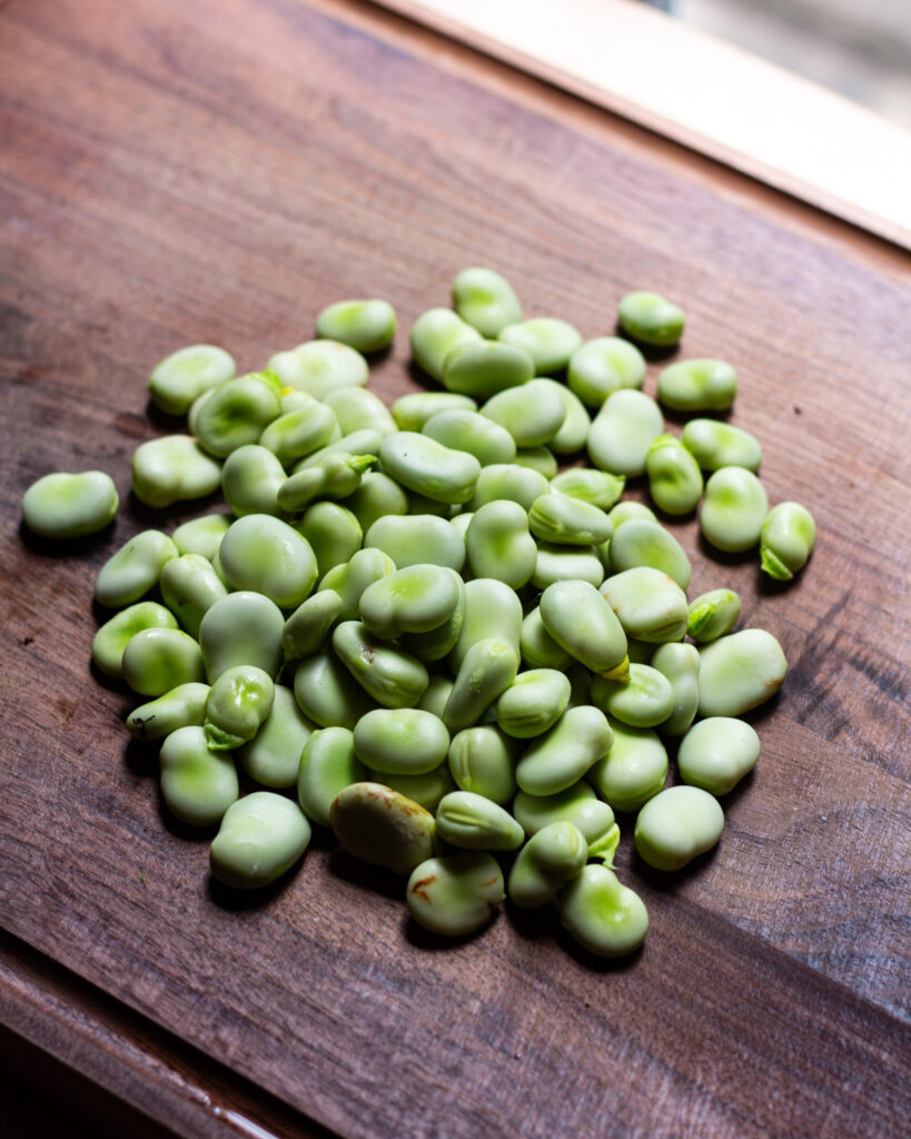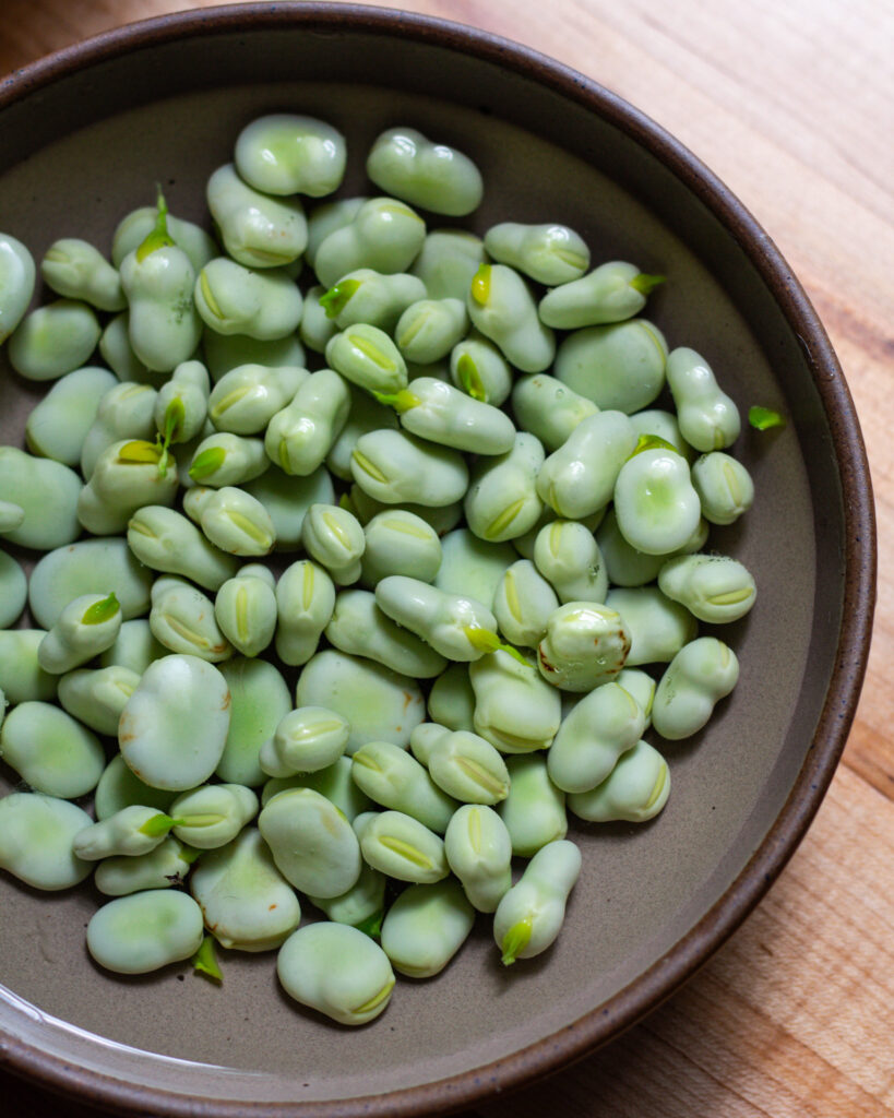 The second shell of the fava bean is a little trickier. It’s a thick, clear coating on the outside of each bean. When the beans are raw, it’s nearly impossible to pull these off of the beans. But when you blanch the beans, it helps release the shell, making it so you can easily pinch them off of the beans themselves.