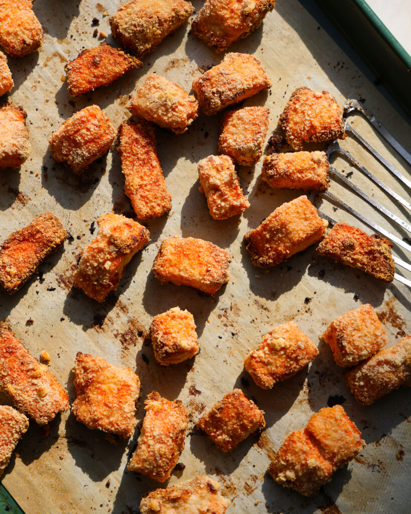 A lot of people think you need an air-fryer to make salmon nuggets crispy, and that’s simply not true! An air fryer is just a smaller convection oven, which circulates air in your oven to bake things more evenly and at a slightly higher heat.