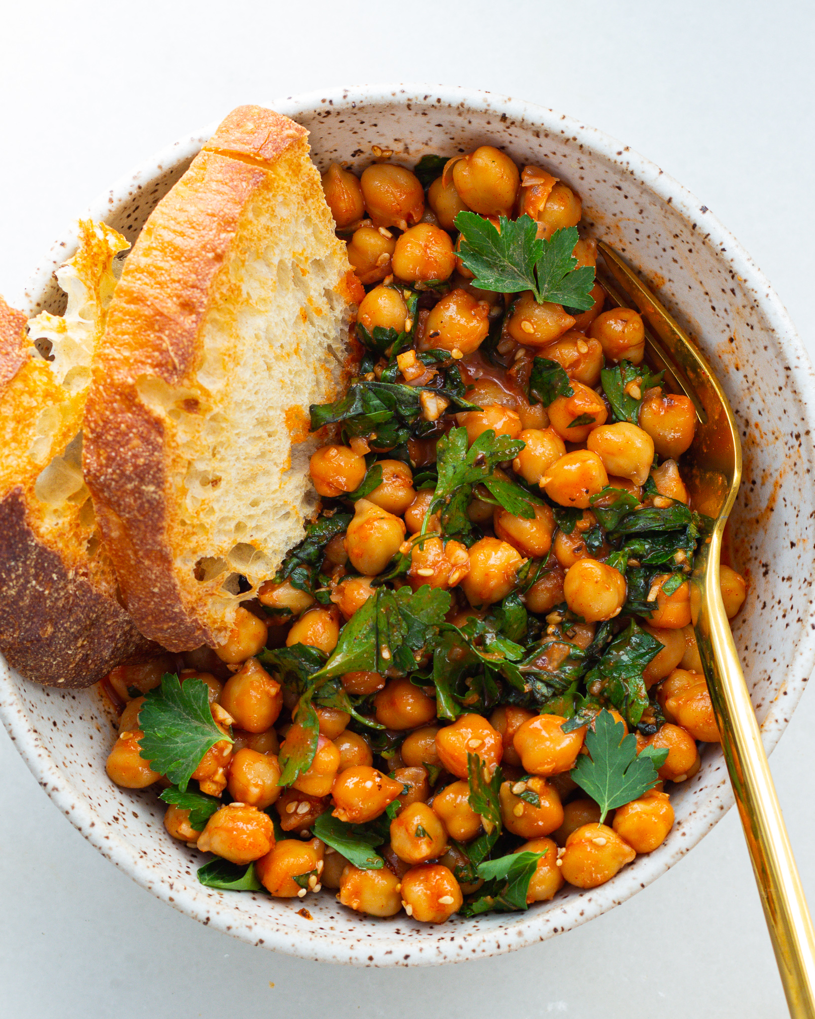 - Toss the herbs in with the chickpeas and give a quick stir to evenly distribute everything.