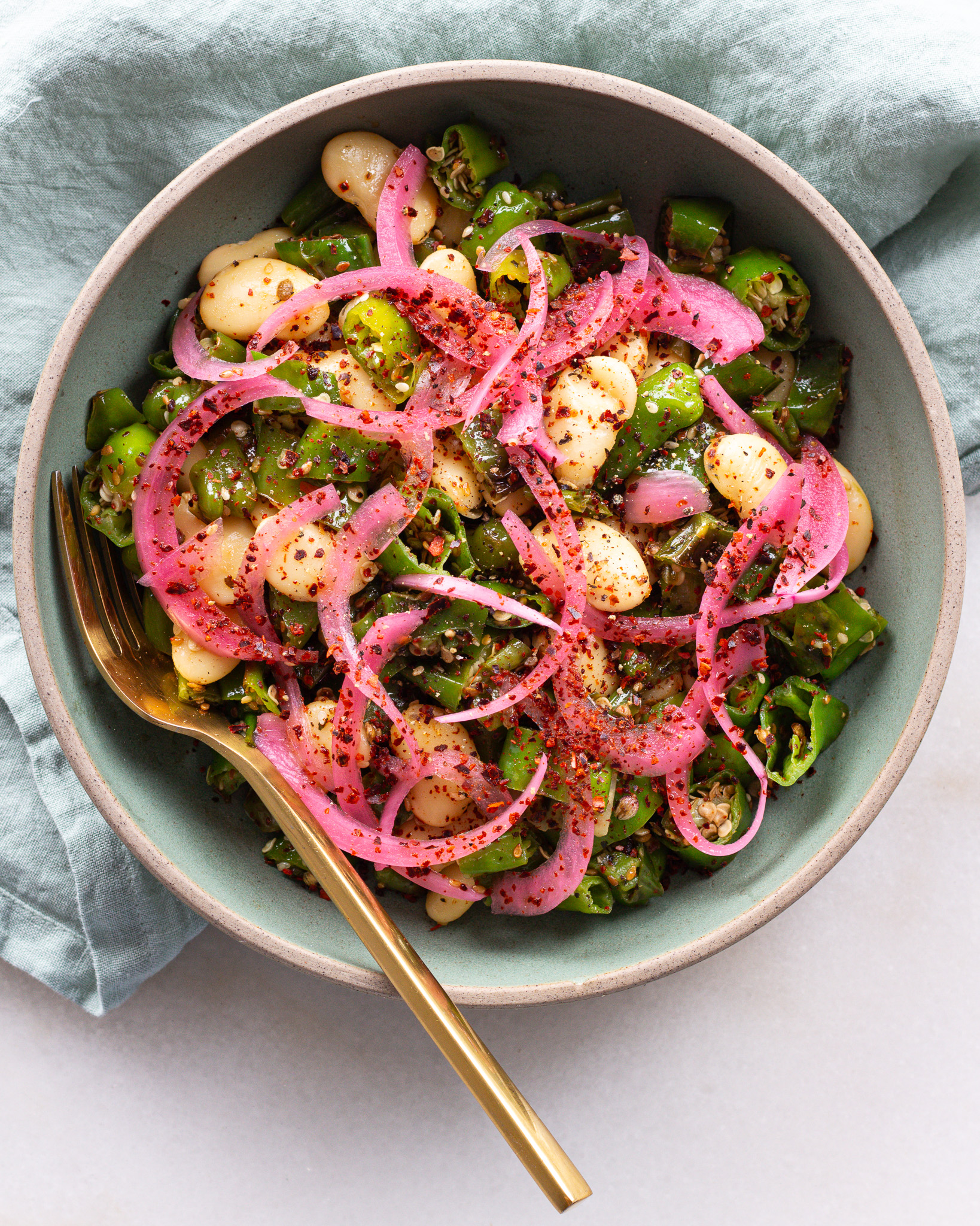 Shishito Pepper Salad with Sizzled Mint & Sesame