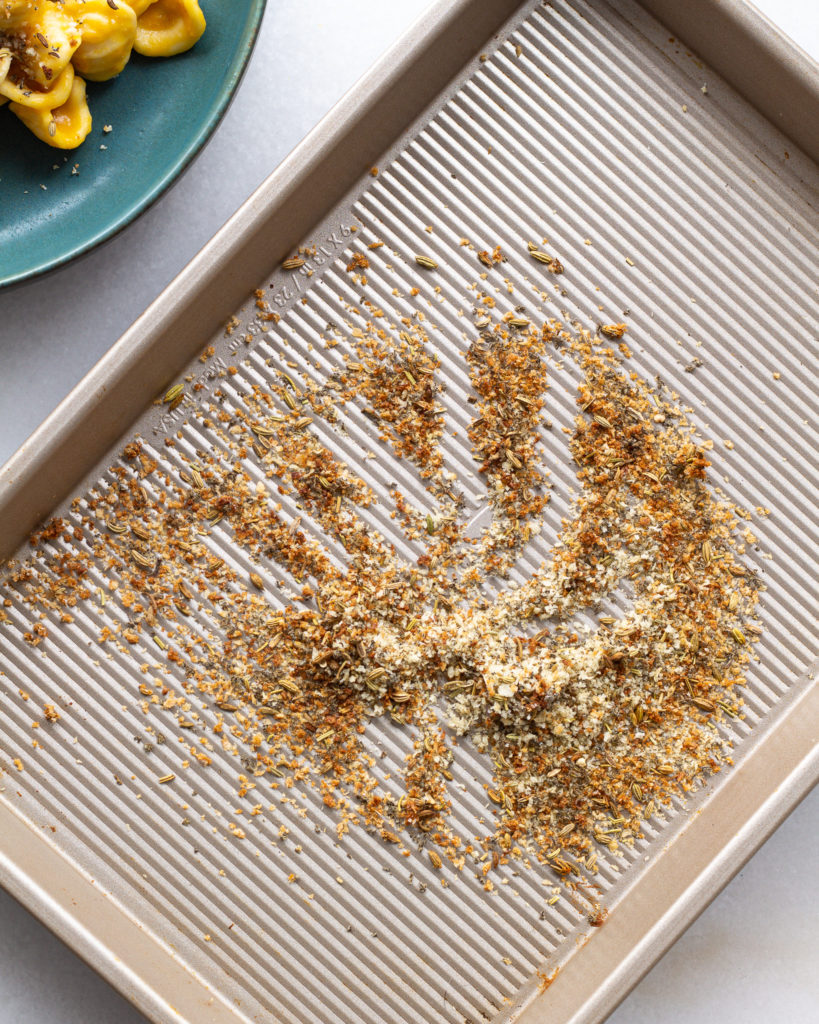 - Toast the breadcrumbs either on the stovetop or under your oven’s broiler for about 4-5 minutes, or until golden. Set to the side.