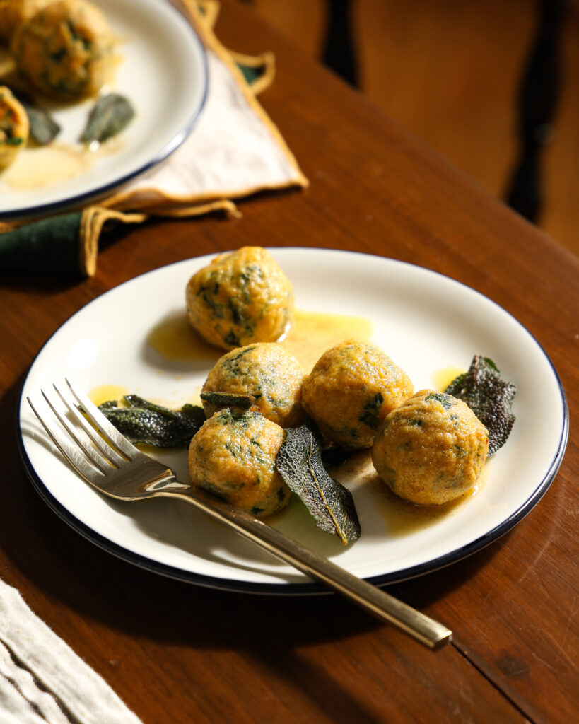 Gnudi is one of my favorite things to make. These little ricotta-stuffed dumplings are surprisingly easy, and the effort-to-payoff ratio is off the charts. In this version of gnudi, I add in pumpkin, which is ricotta’s creamy, sweet best friend.