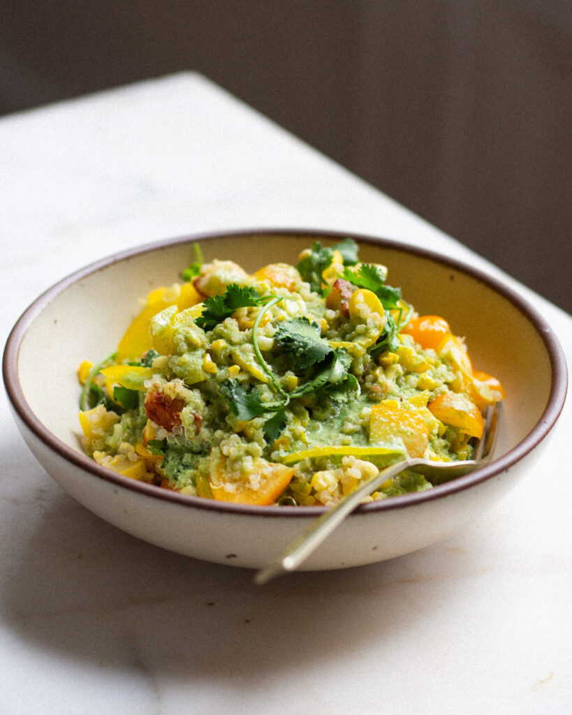 this is soooo good! i’ve made it twice, the first time with corn, peppers and tomatoes, and the second time with summer squash, green beans and carrots (per what we got in our CSA box) and it was delicious both times! truly my dream meal, creamy, crunchy, spicy, herby, zingy, salty- great for meal prep but also easy enough to make on a weeknight. you nailed this one Justine! thank you!
