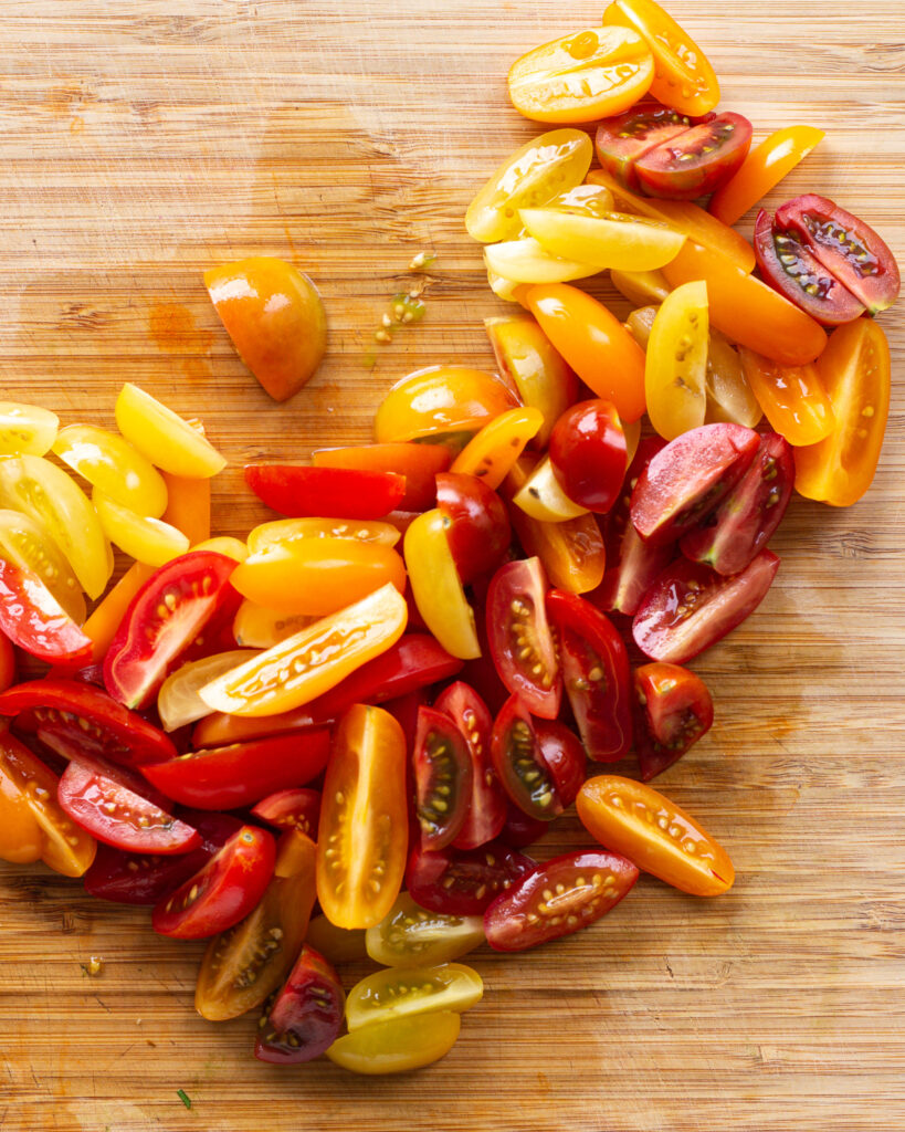 - 1 pint cherry tomatoes assorted colors, halved