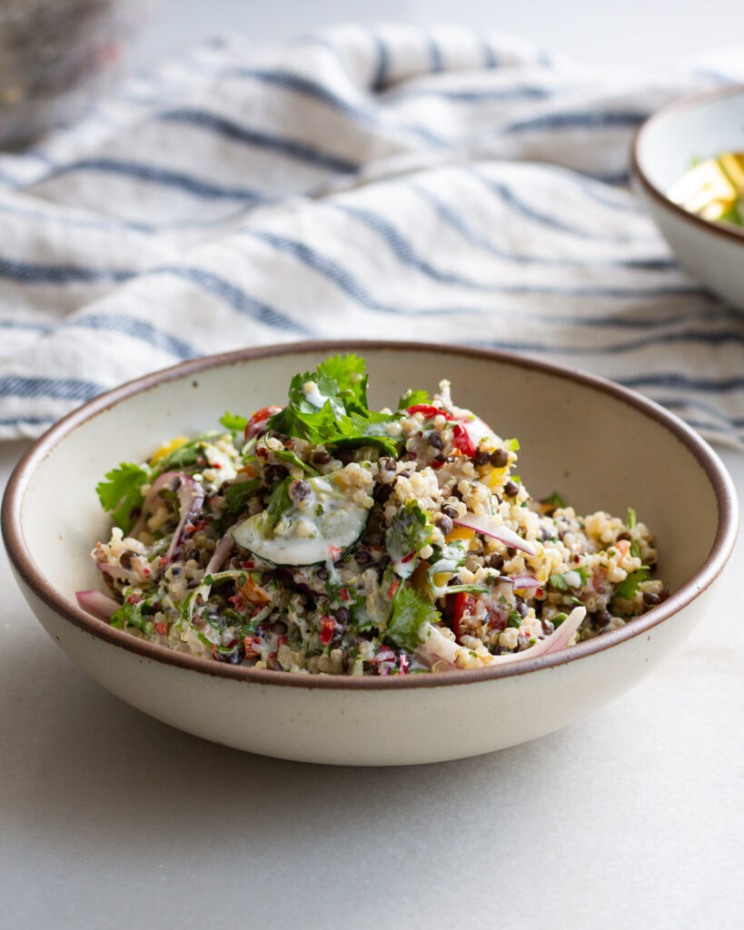And that’s it for this Quinoa and Black Lentil Summer Salad with Coconut Milk Dressing!