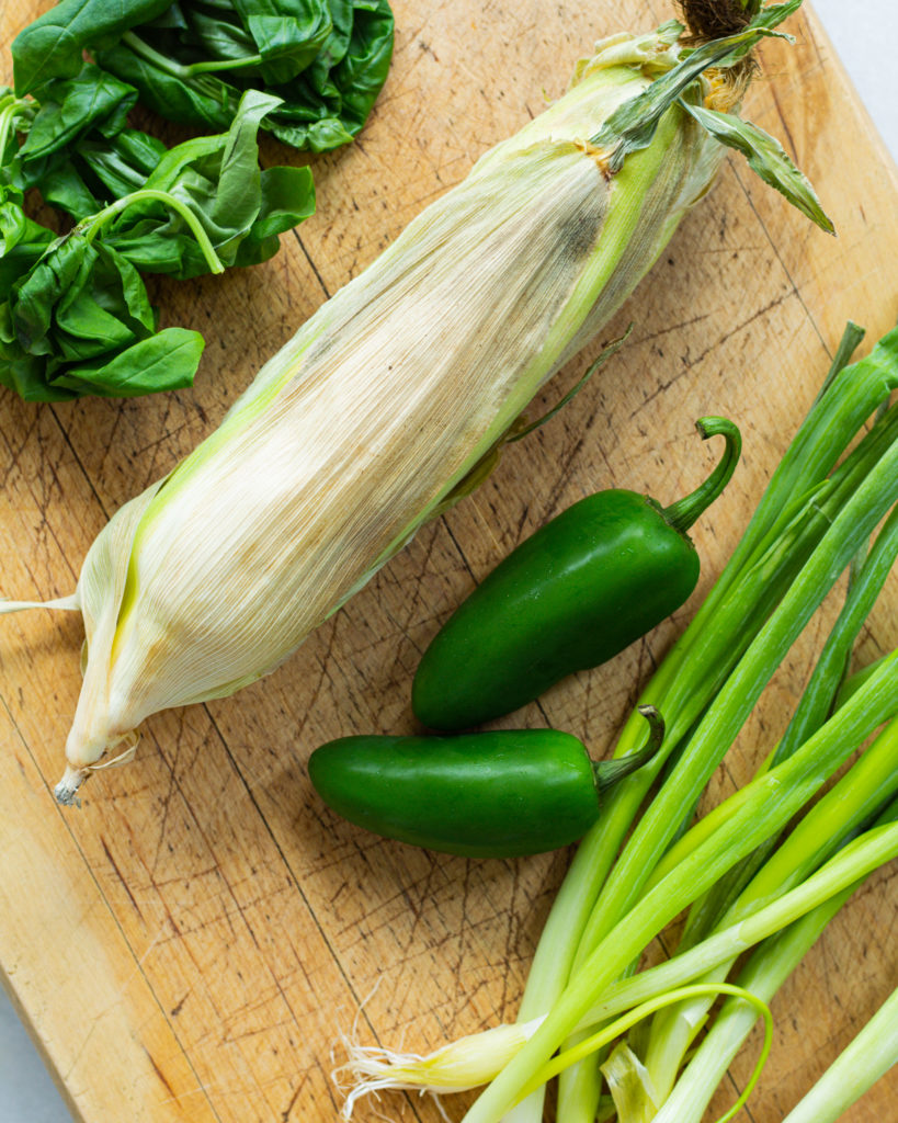 When I first started developing recipes, I thought of building flavors as making a ladder, and each ingredient is a rung on that ladder, and every rung must connect. There are some ingredients that everyone knows go together – for example: corn + jalapeños. So these two ingredients are rungs of the ladder that are next to each other. They connect.