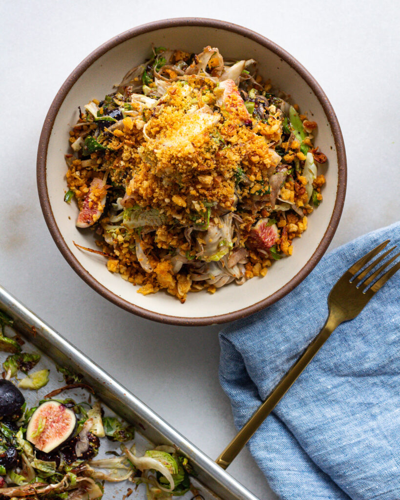 Read on for more on how to make this roasted fennel and brussels sprout salad, and welcome to baked salad season 3!