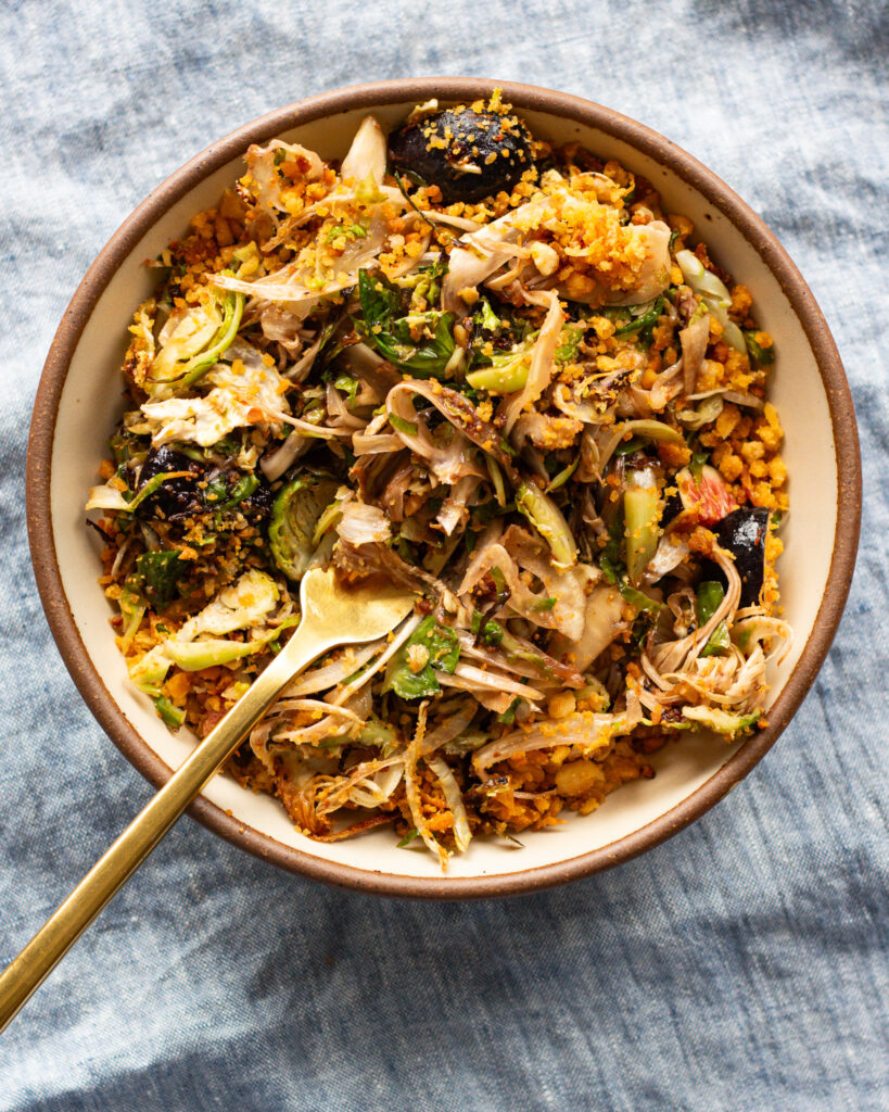 Brussel Sprout Salad with Anchovy Tahini & Za’atar Chickpeas