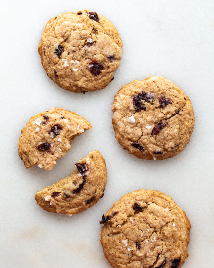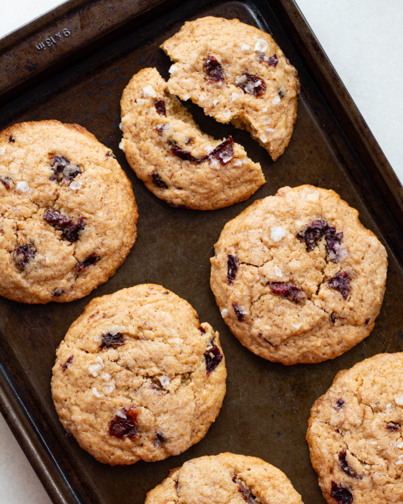 This year, the sugar cookie deserved a major glow up, and that’s where the salted cherry sugar cookie comes in. Think of this cookie as your traditional sugar cookie, but with the addition of extra salt (for flavor and gluten! Chewiness of course!) and frozen cherries that get all rich and delicious in the oven.