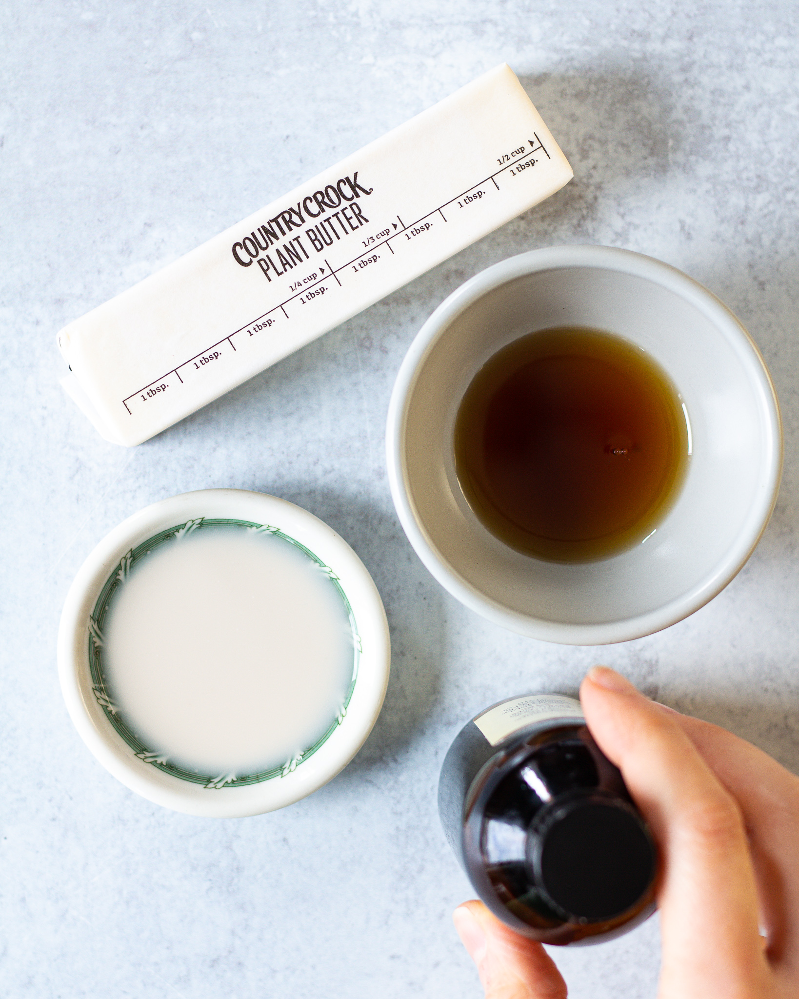 - 1 & 1/2 tbsp melted vegan butter, I like Country Crock plant-based butters