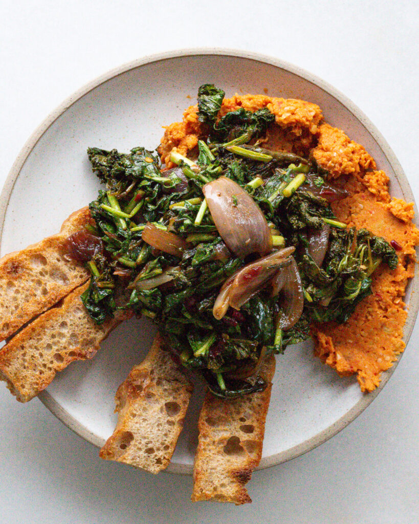 This kale salad is cooked down in a balsamic glaze, paired with jammy shallots and roasted red pepper chickpea mash, and even without the cheese it’s a full meal (but truly, why would you want to skip the cheese?) The full recipe can be made in minutes, and it’s easily one of my favorite wholesome and filling meals on the site. Everything is in the blog post, and I hope you’ll love it as much as I do!
