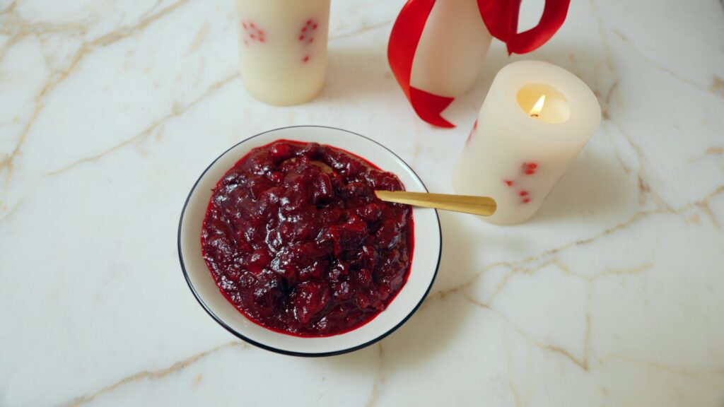 If you are buying cranberries from the grocery store, odds are they are in a 12-ounce bag, which is the perfect size for this recipe AND yields the perfect amount of cranberry sauce for a table. It’s almost like they knew.
