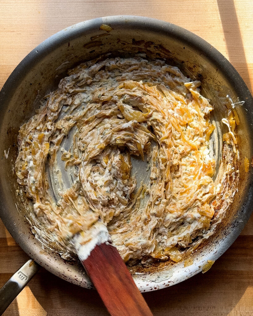 There are few things I love more at a potluck than a galette that’s rich, hearty, but also incredibly easy to make. Enter scene: this Sour Cream & Caramelized Onion Galette. First things first, we all know sour cream and onion are a match made in heaven. Just try the potato chip flavor and tell me it’s not the best thing in the entire world. So what happens when you take sticky, rich caramelized onions, mix in sour cream and then bake it in the oven until it becomes even more charred and caramelized? Absolute heaven. And don’t even get me started on the flaky crust.