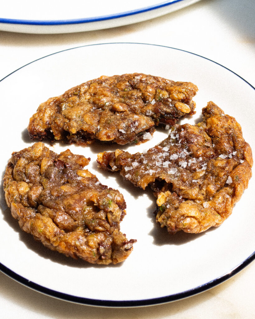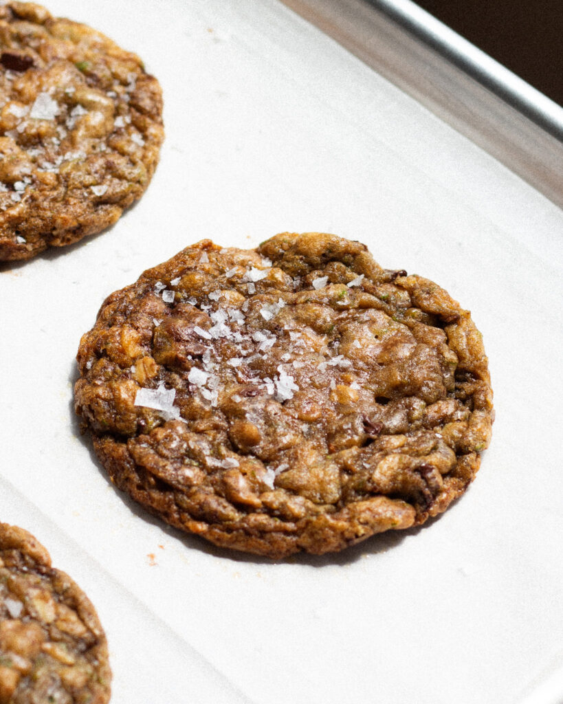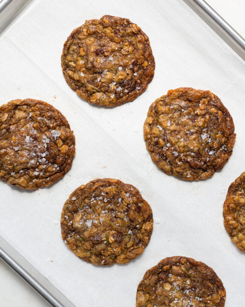 If I didn’t trust Justine implicitly from other banger recipes, I never would have tried these cookies. Zucchini in cookies sounds terrible, but DAMN. These may be the best cookies I have ever had. So tender and delicious. Also, definitely recommend sticking to weights when mixing. I had to add way more than 1 1/4c oats to get the appropriate weight. More like 1 1/2c I think? Maybe 1 3/4c. The butter/oats pre-cooked on the stopetop was also GENIOUS! Never would have thought to do that. Another amazing recipe, thanks Justine!
