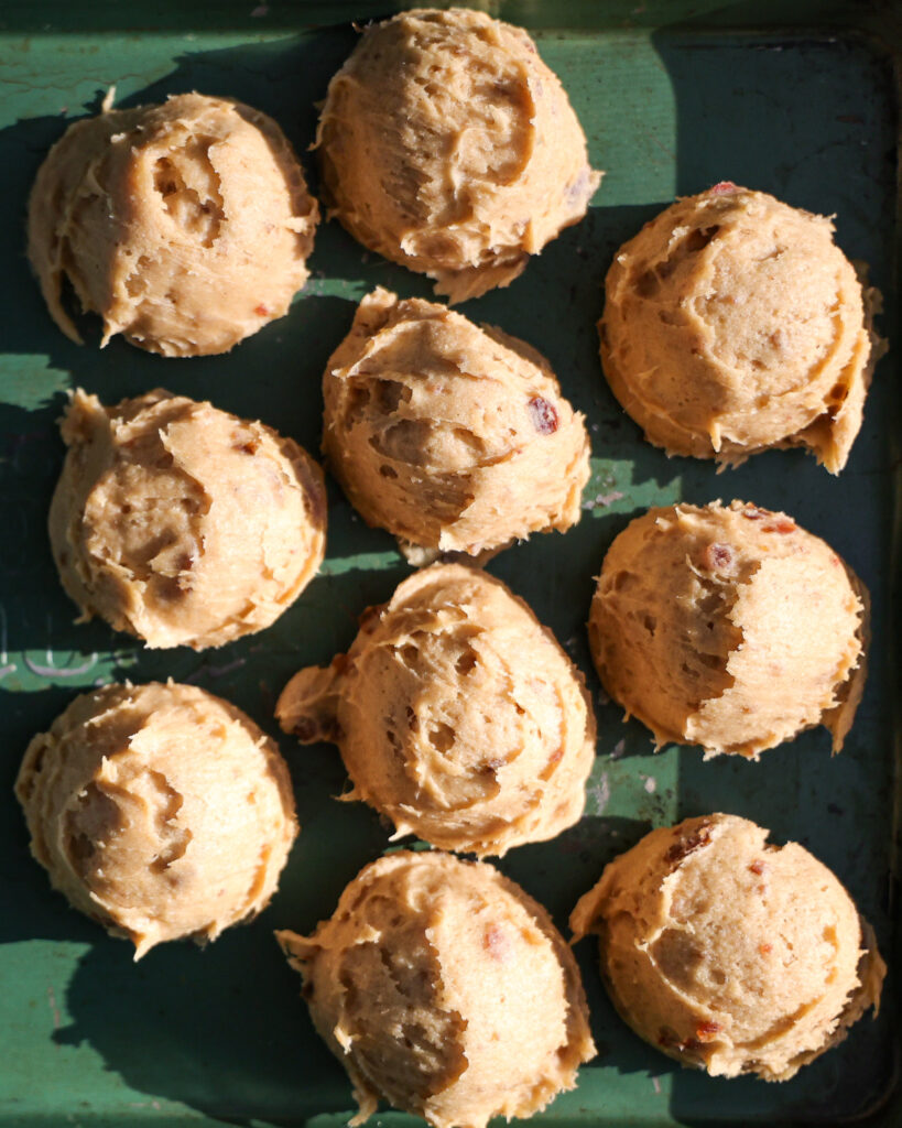 - Use a 1.5-tablespoon cookie scoop to portion the dough into 24 balls, aim for 1.5 ounces each. Chill these in the fridge while you preheat the oven.