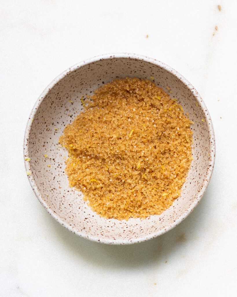 But while it’s simple in nature, you do need to think about it a bit. I like to use turbinado sugar because it has big sugar granules that break into the lemon zest and make a really vibrant, flavorful sugar. This sugar also caramelizes really nicely on top of baked goods, so it feels like your getting a lemon sugar coating.
