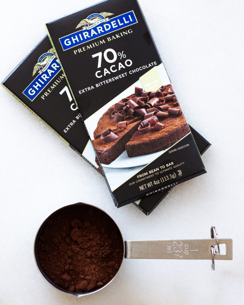 - 2 bars of 70% dark chocolate, 113 grams each