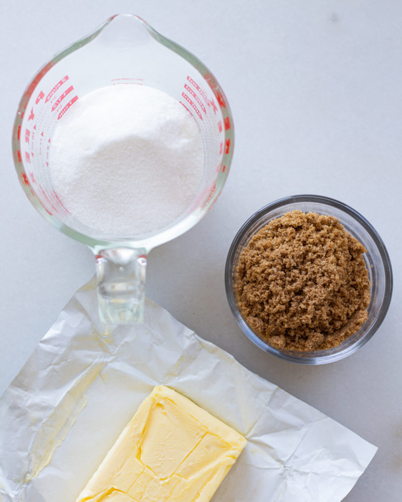 What happens when we brown butter, is that the butter separates into water and milk solids. Butter is actually about 22% water and 78% milk solids (baking math, fun!) and the milk solids are what create the dark, rich tones of brown butter.