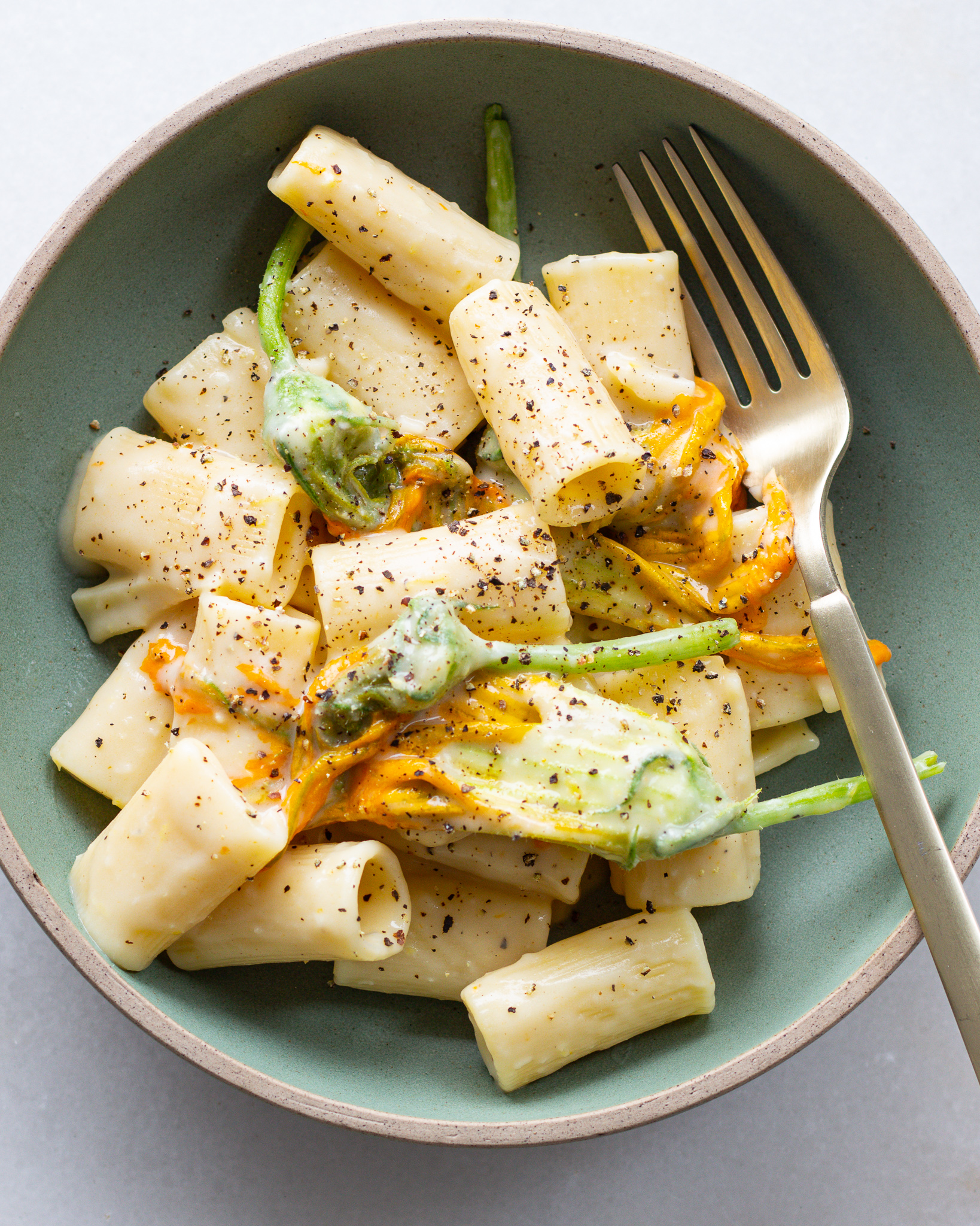 Creamy Lemon Pepper Pasta with Squash Blossoms