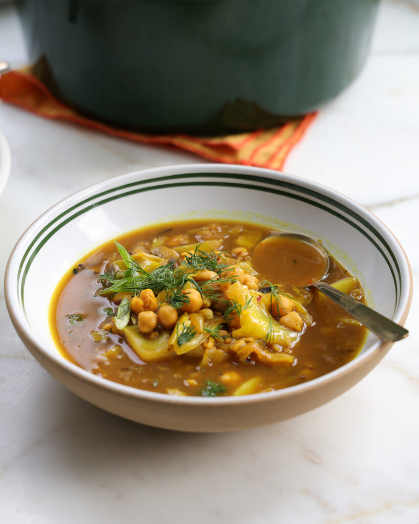 This soup is a great plant-based option, but also equally delicious if you make it with chicken broth. The whole thing comes out warm, cozy, and really great with crusty sourdough.