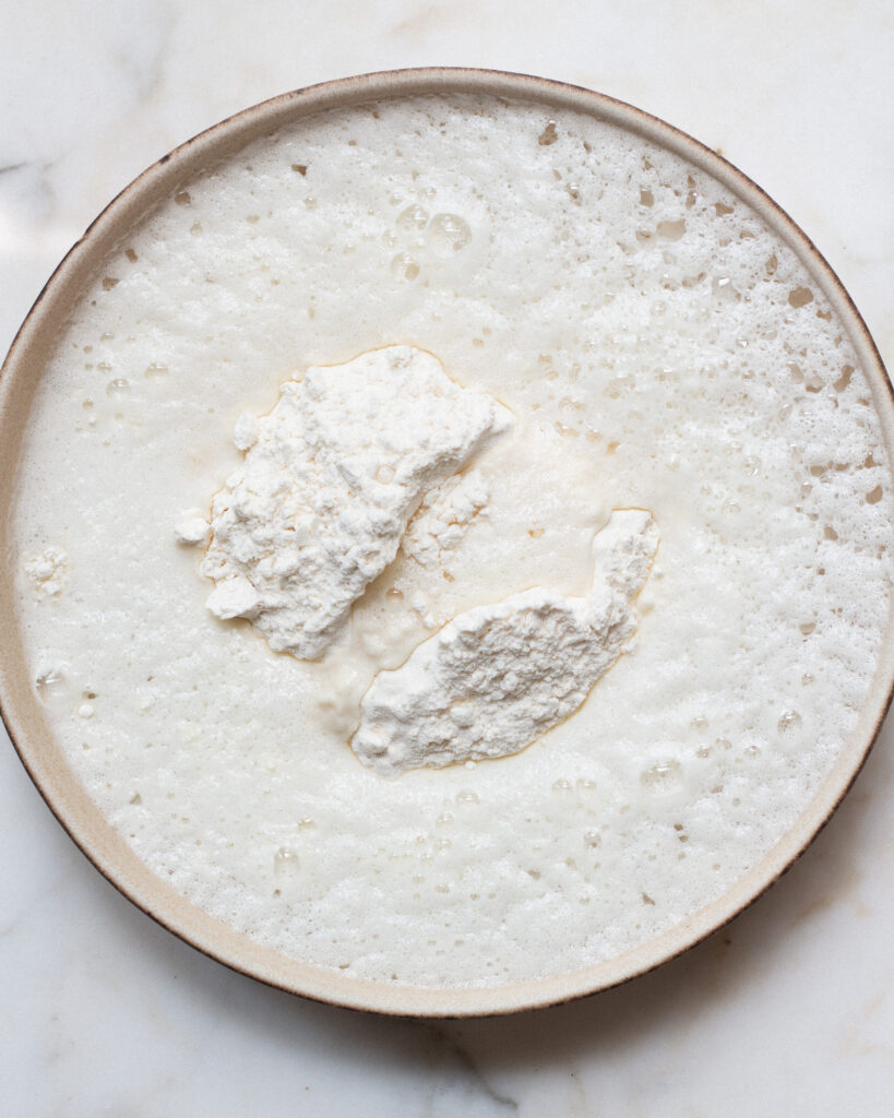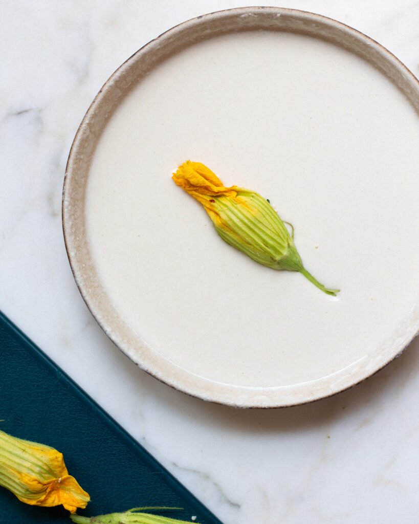 This one is easy (and this batter is fool-proof!). Whisk together one cup of flour, one cup of seltzer water, and one teaspoon of salt. It will thicken a bit as it sits, but it’s a really nice, light vegan batter that is perfect for frying stuffed squash blossoms without weighing them down.