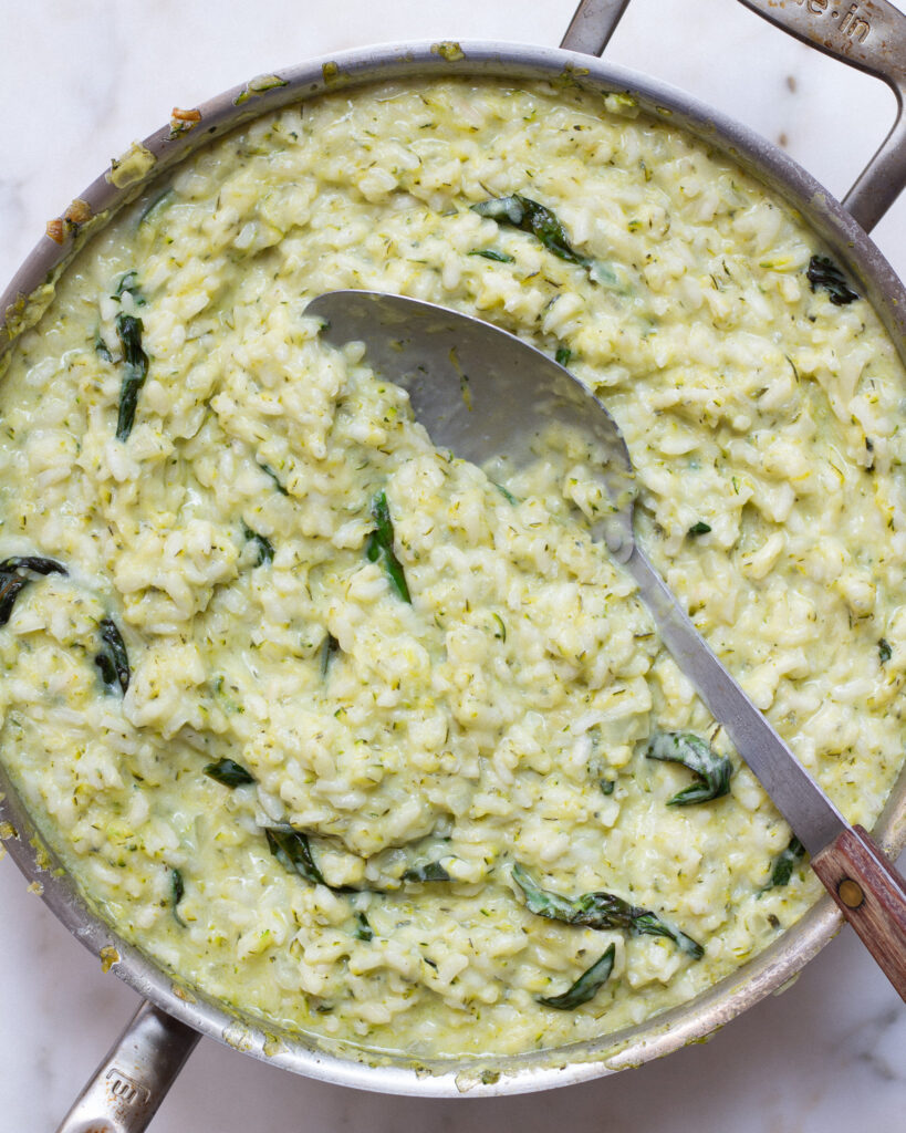 The zucchini’s moisture is also an asset here, since it lends liquid to the risotto, and the rice fully absorbs the zucchini’s flavor!
