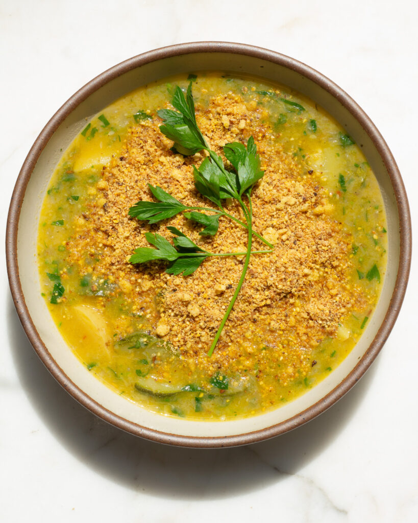 I had a bite of this zucchini soup and the first word I said was “WOW.” It’s supremely flavorful, and one of my favorite ways to use zucchini as we transition from late summer to fall. Zucchini is a great addition to soups, and this recipe uses it in both a grated form and as big chunks. The chunks of zucchini simmer along with potatoes, and they both melt into a similar texture — rich, hearty, and packed with flavor in every bite.